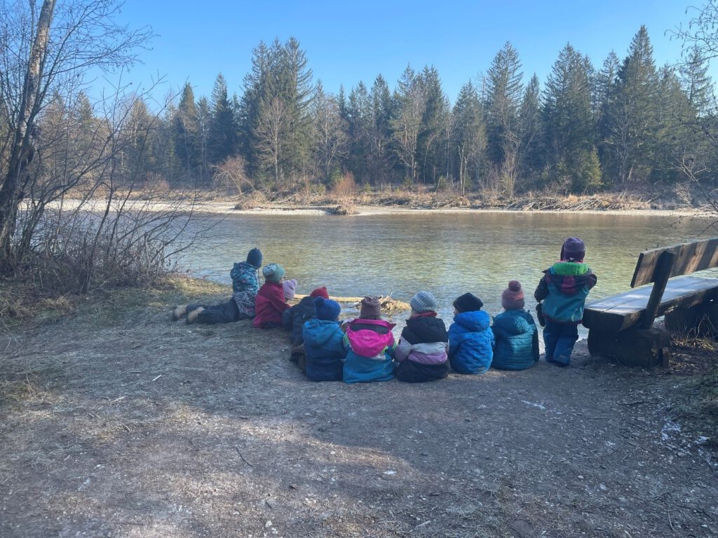 Ausgehend von unserer Schutzhütte, dem Bauwagen am Ende der Wacholderstraße in Wolfratshausen Nantwein, besuchen wir verschiedene Plätze im Wald und an der Isar. Wir treffen uns morgens ab 8.00 Uhr immer am Bauwagen, wo die Kinder während der Bringzeit auf der Wiese oder im Sandkasten spielen, malen und ankommen können. Nach einem gemeinsamen Morgenkreis gehen wir zu einem unserer Waldplätze, wo normalerweise dann auch die Brotzeit gemeinsam stattfindet. Wir legen viel Wert auf genug Zeit zum freien Spiel, bei dem emotionale, soziale, naturwissenschaftliche und sprachliche Fähigkeiten gefördert werden. Zur ersten Abholzeit um 13.00 Uhr sind wir rechtzeitig zurück am Bauwagen und verabschieden uns im gemeinsamen Abschlusskreis. Im Anschluss werden manche Kinder abgeholt, andere essen gemeinsam ihr mitgebrachtes Mittagessen. Der Kindergarten endet um 14.00 Uhr